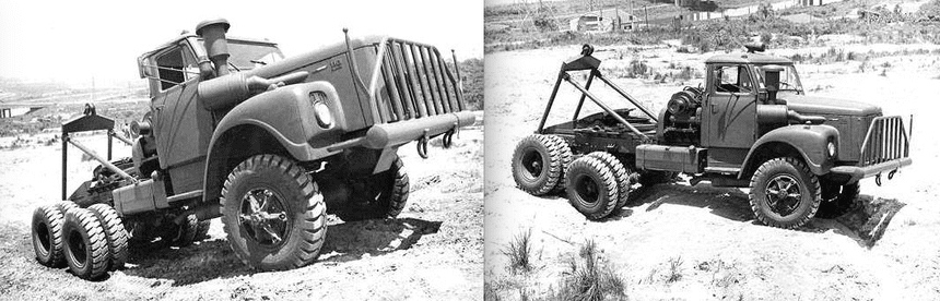 Un porteur 6×6 sera également réalisé pour servir de tracteur d’artillerie. Par la suite, la filiale brésilienne continuera à s’illustrer avec des 6×6 sur base T 112 qui n’ont, eux non plus, jamais existé en Europe.