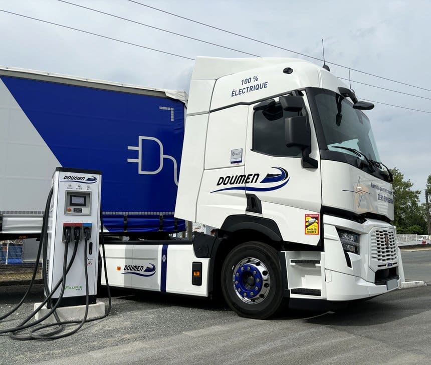 Quelle marque sort gagnante de ce développement ? Parmi les gagnants sur ce marché français émergent, Renault Trucks, qui lance son tracteur 44 t T E-Tech. Soutenus par l’Ademe, les transports Doumen, basés à Boulazac en Dordogne, en ont acquis un qui assurera plusieurs liaisons quotidiennes dans un rayon de 150 km autour de Périgueux, ainsi que six points de charge. La société dispose déjà de 51 camions au biogaz et de 14 au biocarburant Oleo100. Huit utilitaires électriques ont aussi rejoint le parc pour assurer les livraisons des derniers kilomètres.