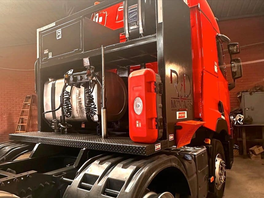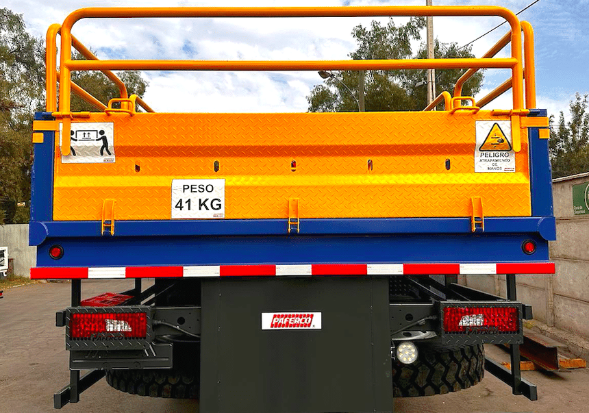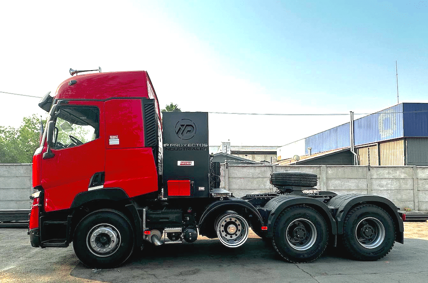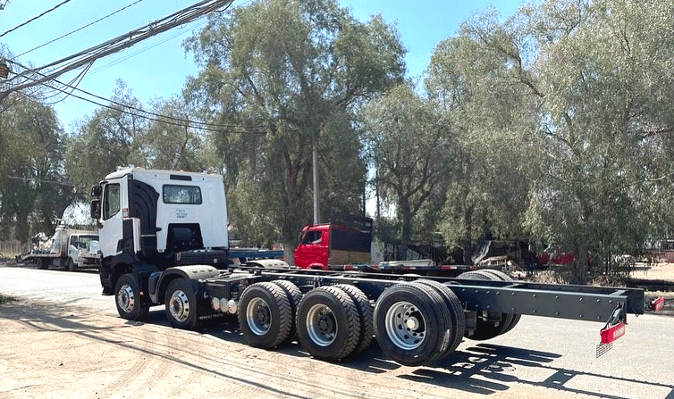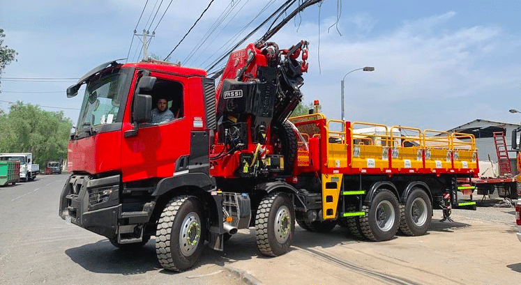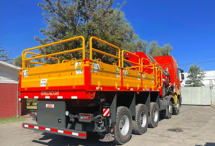 Mis en service il y a peu au Chili, il se distingue aussi par sa carrosserie, qui n’est pas une benne, comme souvent sur ce genre de châssis, mais un plateau-ridelles. Et pas n’importe lequel, un modèle renforcé, tout acier, capable d’accueillir des pièces lourdes.