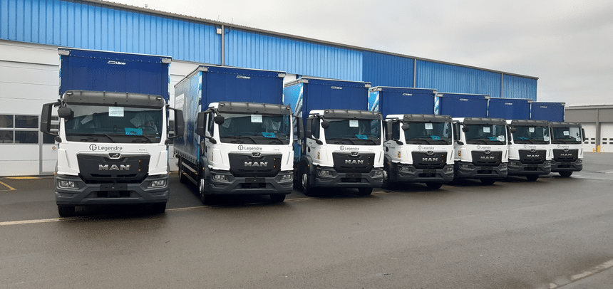 Les Transports Legendre, dont le siège se trouve à La Bazoche-Gouet en Eure et Loir, viennent de recevoir treize porteurs MAN TGM de 290 ch équipés de la technologie BirdView, qui apporte une vue panoramique du camion. Il s’agit des premières livraisons de ce type en France.