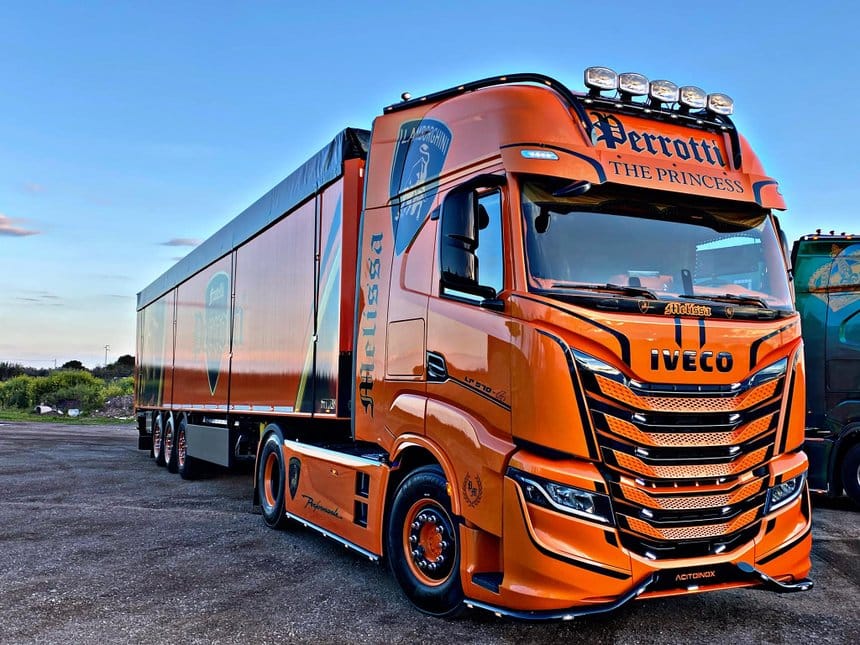 Après le Gladiatore, le transporteur italien Perrotti vient d’ajouter à sa flotte deux nouveaux petits bijoux : les ensembles routiers The Queen et The Princess. Ces derniers rendent hommage respectivement à l’épouse et la fille de Michelle Perrotti, qui a fondé en 2008 cette entreprise familiale spécialisée dans le transport d’aliments et de céréales bio. Autotrasporti Perrotti Spa dont le siège se situe à Lucera dans la province de Foggia, possède sûrement l’un des plus beaux line-up d’Italie, voire même d’Europe.