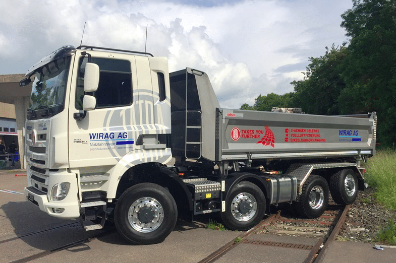 Plus original encore, ce Phoenix suisse est le premier réalisé dans une configuration 8×8/6 à 6 roues directrices, solution garantissant une excellente maniabilité grâce, là aussi, à un dernier essieu dirigé. Ce modèle a été carrossé en benne par Trösch.