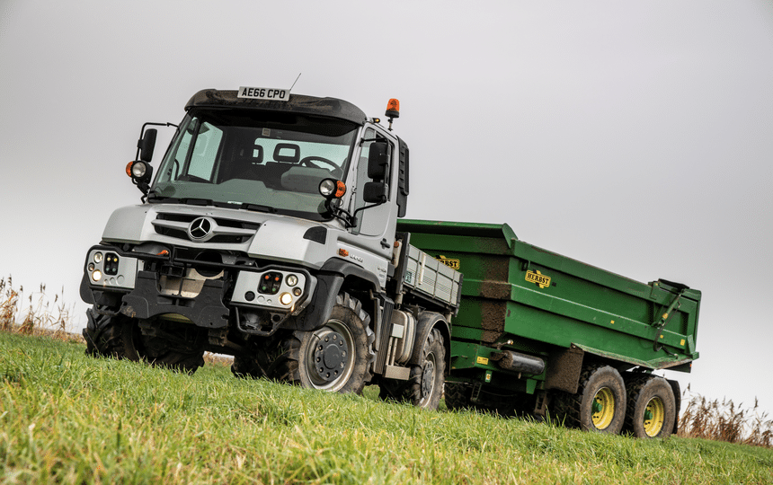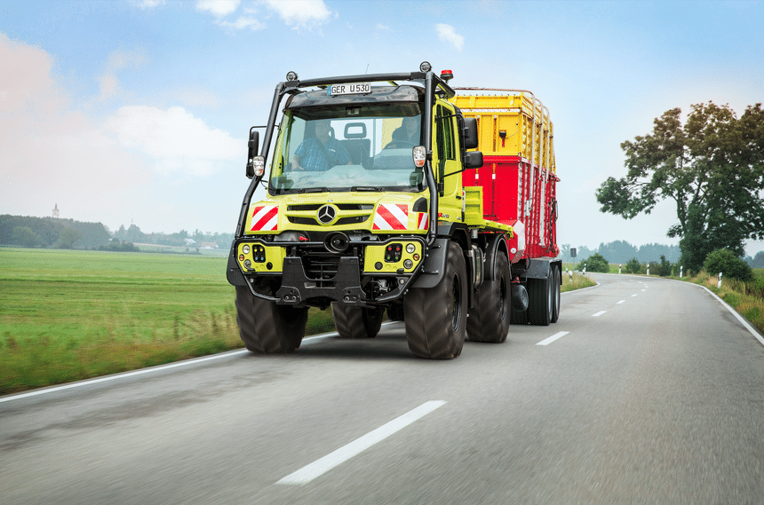 Mercedes-Benz Trucks France présente pour la première fois un camion Unimog homologué selon les normes françaises pour les travaux agricoles lors du Salon International de la Machine Agricole (SIMA) qui s’est déroulé au Parc des Expositions de Paris-Nord Villepinte. Conçu dès l’origine comme un utilitaire hybride entre un camion et un tracteur, le célèbre petit « couteau suisse » de Mercedes a en effet passé les tests nécessaires pour répondre au règlement T1B adapté à une utilisation par les exploitants agricoles et les entreprises de travaux agricoles (ETA). Outre une vitesse maxi limitée à 80 km/h (sur route), cette homologation lui permet aussi d’être conduit par des personnes ne disposant pas du permis de conduire poids lourd (à partir de 16 ans avec une vitesse maximum de 40 km/h).