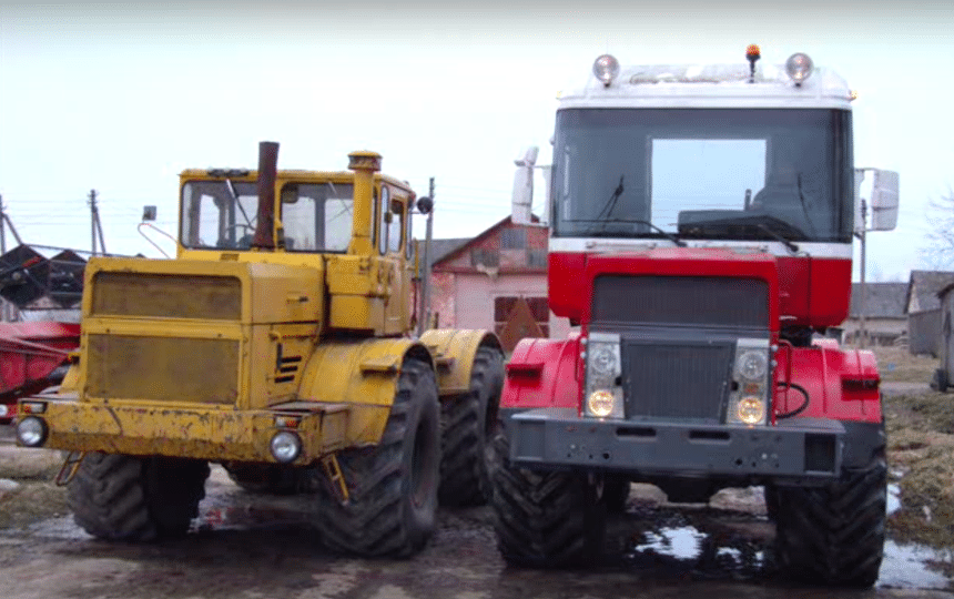 Un Kirowiec K-70 avec sa cabine d’origine et celui modifié avec une cellule de Renault Magnum. Avant de pouvoir poser la cabine, il y a eu beaucoup de travail, que ce soit au niveau des commandes ou de la suspension pneumatique de la cellule.