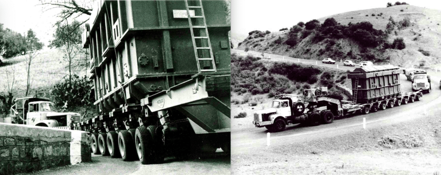 Enfin, pour finir, une petite séquence rétro, avec un bel ensemble de la compagnie algérienne Transmex surpris en plein travail, au début des années 70. La semi-remorque modulaire à suspensions hydrauliques est une 8 lignes Nicolas dont la traction est assurée par deux Berliet TBO 6×4, configurés pour l’un en tracteur à sellette et pour l’autre en pousseur lesté.