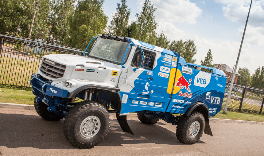 Normal, le nouveau camion que le team russe engagera dans le Dakar 2016 rompt avec la tradition : cabine à capot allemande, celle du Mercedes Zetros, moteur américain Caterpillar, un C13, réglé pour les besoins de la course à 980 ch, et transmission ZF. De quoi tenir une vitesse maxi de 163 km/h pour une masse opérationnelle de 10,2 t.