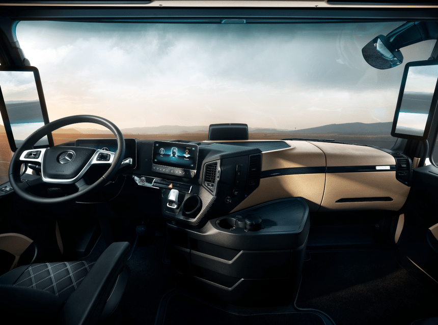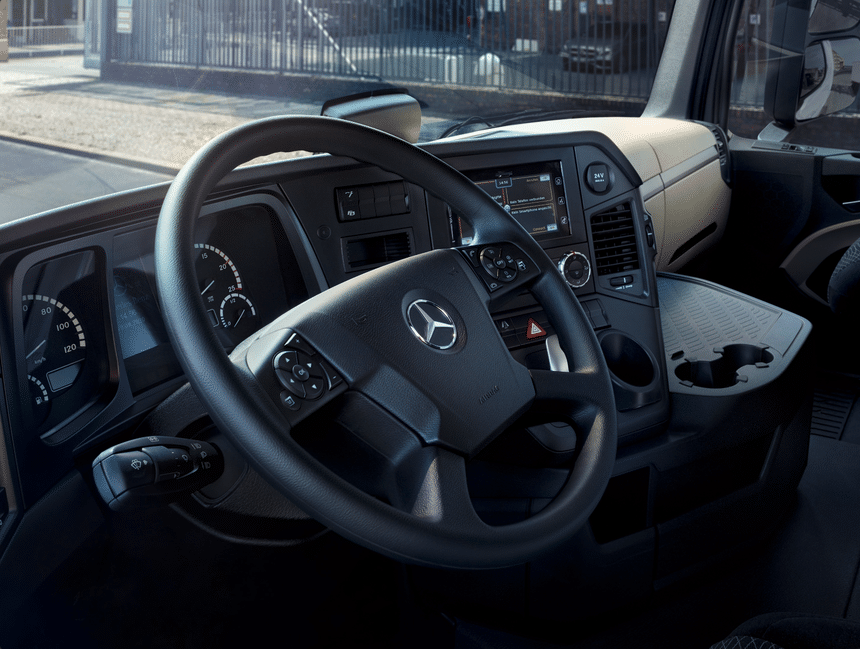 Disponible en 17 variantes, l’Actros F sera équipé de série d’un Classic Cockpit, de l’Active Brake Assist de cinquième génération (ABA 5) et du Lane Keeping Assist, ainsi que de rétroviseurs extérieurs conventionnels. Cependant, les clients pourront choisir d’y ajouter le système de navigation, la climatisation et d’autres options, dont le nouveau cockpit multimédia avec écran de 10 pouces et du volant multifonctions de l’ultime génération d’Actros.