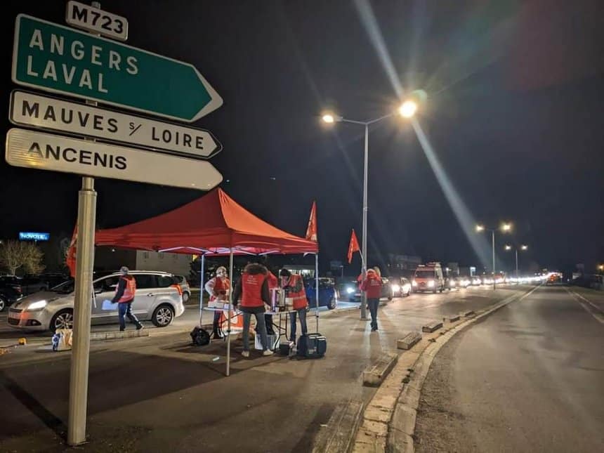 A Boulogne-sur-Mer (Pas-de-Calais), et à l’entrée de Nantes (Loire-Atlantique), « la circulation a été filtrée dans la matinée par les militants de la CGT et de FO Transport, explique Fabrice Michaud, secrétaire général de la CGT Transports. L’objectif était d’alerter les automobilistes sur le projet de loi. Des opérations de tractage ont aussi été menées dans les zones logistiques de Rennes, Montauban, Orléans ».