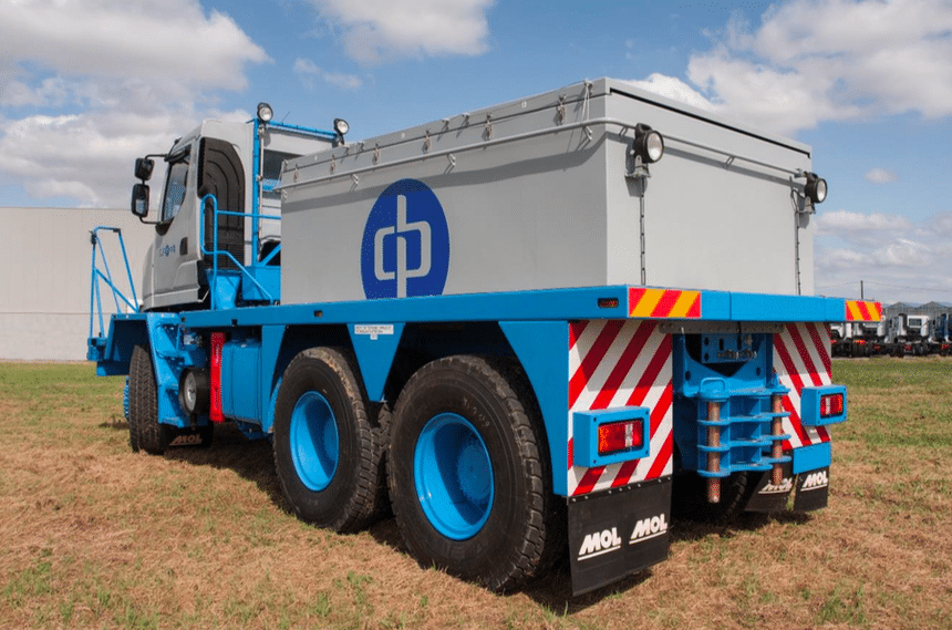 Entraîné par un diesel Cummins ISX15 de 550 ch, suivi d’une boîte Allison 4700 à 6 rapports, dont un extra-lent, et d’une boîte de transfert Kessel à 2 vitesses, le Mol HF5066 est homologué au PTR maxi de 400 t. Il est monté en 14.00R24 et peut se déplacer à la vitesse de 55 km/ h à vide.