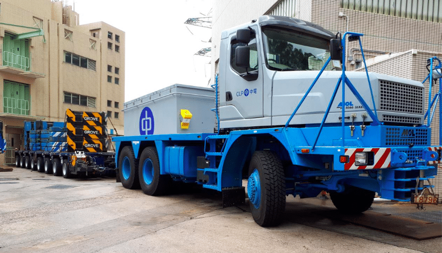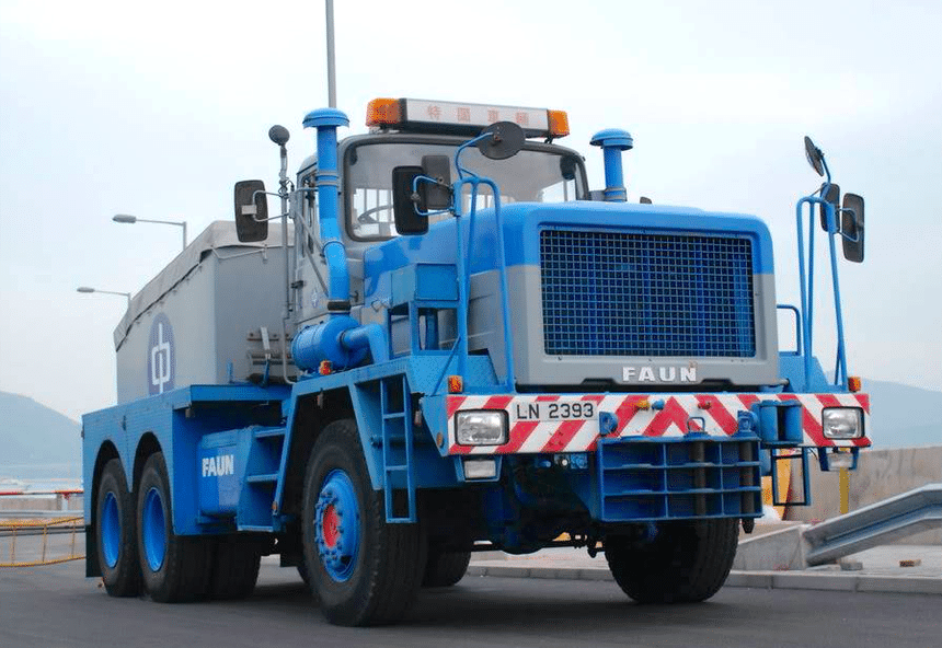 Livré à la compagnie d’électricité CLP de Hong Kong, ce nouveau camion, en dépit d’une puissance modeste (550 ch), est taillé sur mesure pour travailler à des tonnages très élevés, jusqu’à 400 t en palier ou 230 t sur une rampe à 15 %. Une capacité de traction permise par une transmission adaptée, comprenant notamment 6 roues motrices et une boîte de vitesses automatisée Allison à convertisseur de couple et ralentisseur intégré. Avec ses ponts Kessler de 12 t à l’avant et de deux fois 20 t à l’arrière, le HF5066 est homologué au PTC de 52 t. Long de 9,30 m et large de 2,80 m, il est conçu pour être utilisé indifféremment en remorqueur ou en pousseur et pourra également travailler avec les tracteurs Faun 6×6 déjà en service chez CLP.