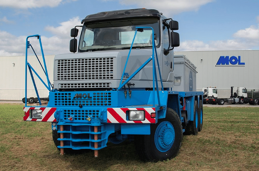 Ces dernières années Mol a livré plusieurs dizaines de porteurs et tracteurs pétroliers 6×6 comme celui-ci à l’Algérie et à la Tunisie. Ses fabrications plus traditionnelles concernent des tracteurs Ro/Ro et de manœuvre sur parc.