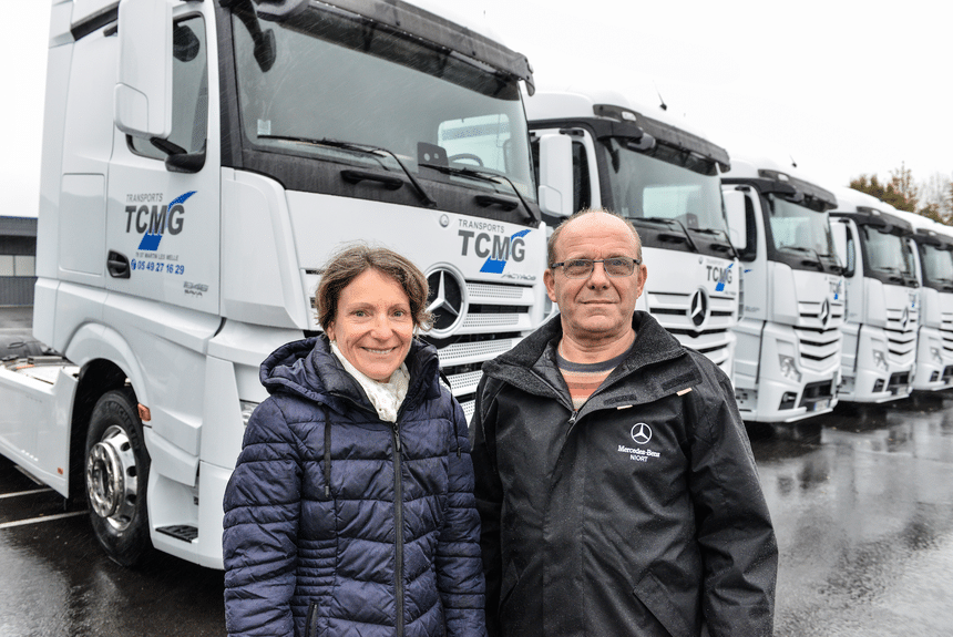 Basés à Saint-Martin-lès-Melle près de Niort, les Transports TCMG ont réceptionné fin 2018 dix tracteurs Mercedes Actros 1846 flambants neufs. Ces derniers rejoignent ainsi le parc de cette entreprise familiale des Deux- Sèvres, qui exploite à présent 88 camions, ainsi que plus d’une centaine de remorques. Originaires de Melle et travaillant alors en usine du côté de Metz, Martine et Christian Gaillard décident de créer les Transports TCMG (pour Transports Christian et Martine Gaillard) en 1986. Spécialisée dans les transports de marchandises générales, la société grandit petit à petit et emploie aujourd’hui 135 personnes. Celle-ci gère notamment de vastes entrepôts de stockage et d’un atelier intégré (ouvert à tous), installés sur son siège.