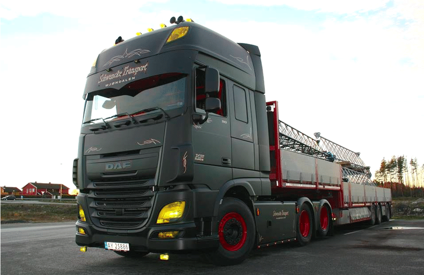 Le tuning camion exprime toujours des préférences marquées. Ces deux exemples nous en fournissent une nouvelle preuve qui jouent sur des teintes en parfaite opposition : le premier, le Daf noir, est norvégien, le second, le Mercedes blanc, est suédois. Une approche différente, mais un même rendu dans l’excellence. Encore accentué par l’effet mat du premier et la brillance du second.
