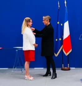 Florence Berthelot, déléguée générale de la Fédération Nationale du Transport Routier (FNTR) depuis 2016, a reçu les insignes de Chevalier dans l’Ordre National de la Légion d’Honneur des mains d’Élisabeth Borne, ministre des Transports, le 10 juillet à l’occasion d’une cérémonie en présence de proches, de parlementaires et des représentants du transport routier de marchandises (TRM).