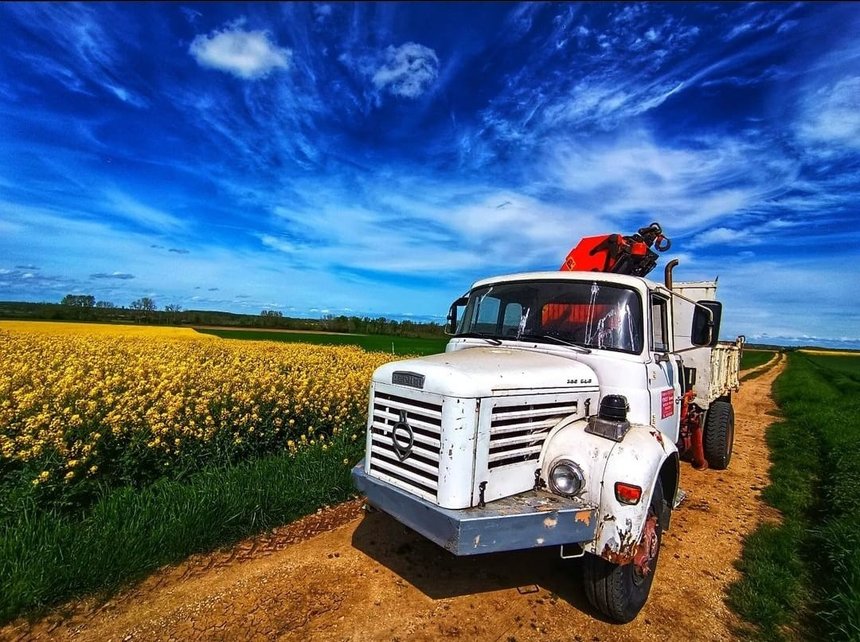 Sur celui-ci, l’ancien propriétaire a remplacé le moteur par un 400 ch. « Avant, il disposait d’une caisse fourgon, raconte Niels. Il servait dans les Vosges. Le camion a été racheté avec un million de km au compteur. Mon prédécesseur a changé la caisse pour transporter des branches de sapin en direction de l’Allemagne. Il s’est servi de ce F12 pendant près de 20 ans et a fait avec près de 250 000 km ».