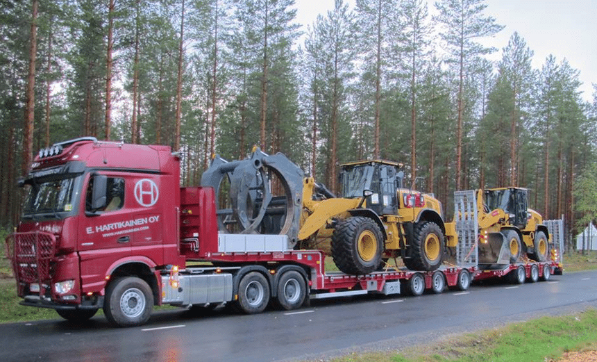 Il est partout nécessaire d’acheminer des engins, qu’ils soient de construction, de manutention, d’exploitation agricole ou forestière, mais on ne procède pas partout de la même manière. Question de réglementation, d’habitudes aussi, de moyens parfois. Voici deux exemples, découverts en Finlande, qui changent un peu de ce que l’on connaît en France.