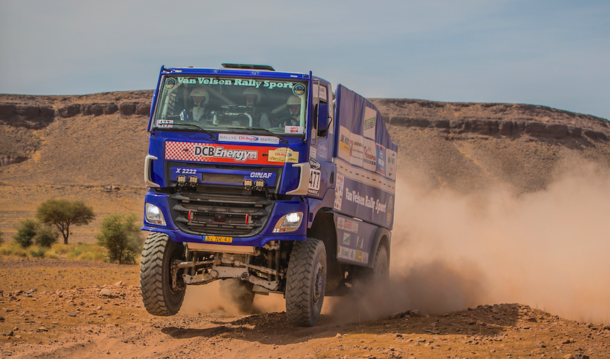 Essentiellement composé de Daf, avec quelques Ginaf et Scania, le parc de A. Van Velsen compte toutefois un autre Ginaf d’exception. Un camion qui pourrait même faire parler de lui dans les mois à venir et qui ne ressemble pas du tout à notre 10×2 de 50 t : il s’agit d’un 4×4 de 1 000 ch (moteur Caterpillar) engagé dans le Dakar 2016 par le Van Velsen Rally Sport team !