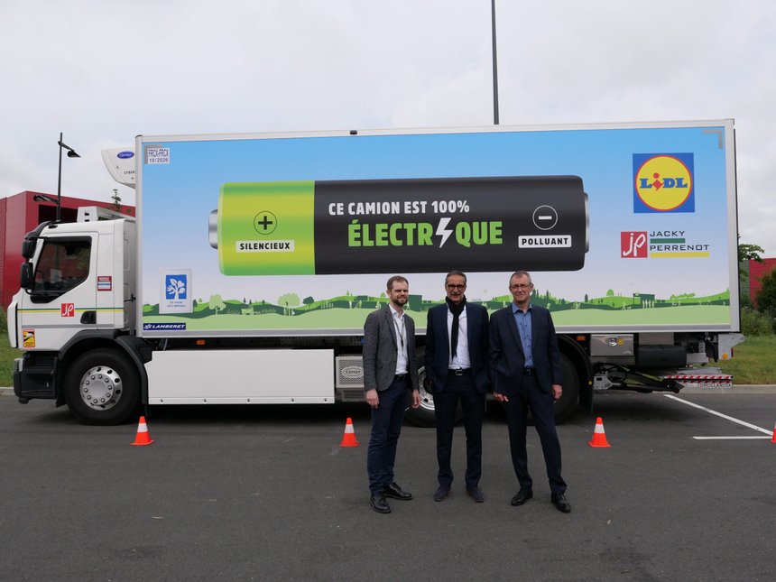 Le transporteur Jacky Perrenot assure les premières livraisons de magasins Lidl de la région parisienne au moyen d’un camion porteur de 26 tonnes Renault D Wide ZE. Ce camion électrique est opérationnel depuis le 23 juin.