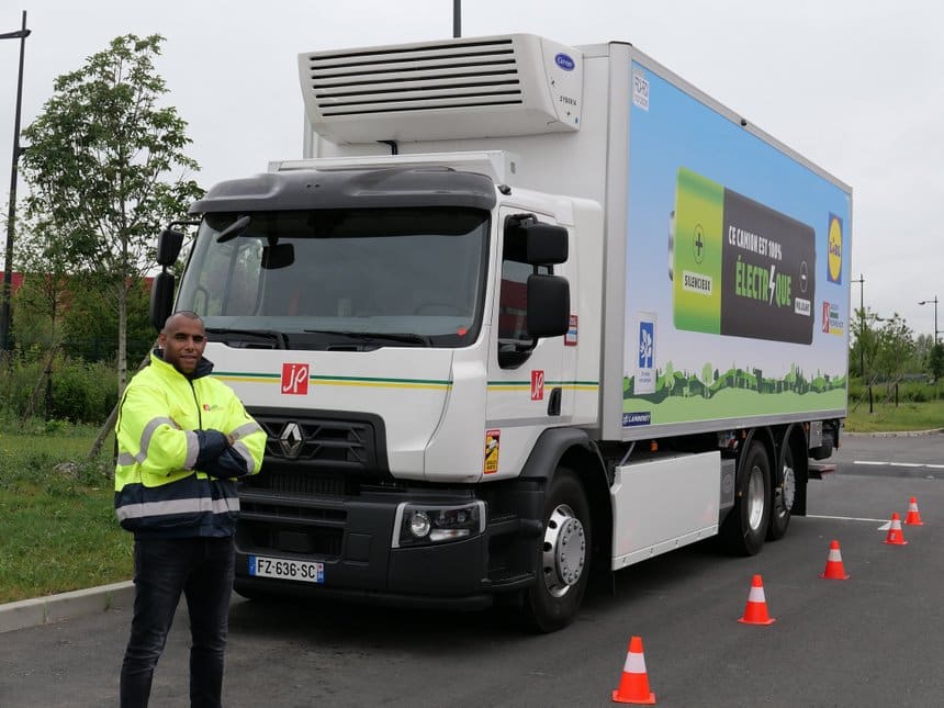 C’est une association de trois entreprises conscientes de l’urgence de réduire l’impact environnemental dans la distribution urbaine (et un peu obligées aussi par les règlements zones à faibles émissions – ZFE) : le transporteur Jacky Perrenot, la chaîne de supermarchés Lidl France et le constructeur de véhicules industriels Renault Trucks ont développé ensemble l’usage d’un camion porteur électrique de 26 t, un Renault D Wide ZE, pour la distribution de produits vendus dans des magasins de l’Ile-de-France.