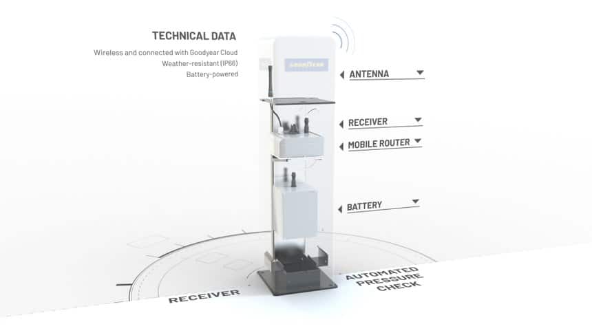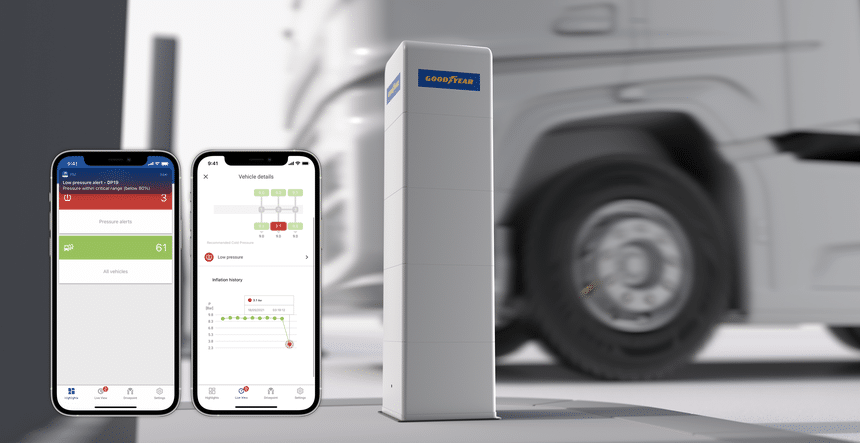 Il suffit qu’un véhicule passe entre elles, pour que la pression de tous les pneumatiques équipés de capteurs soit immédiatement lue. Les données collectées sont téléchargées dans le cloud de Goodyear, qui offre un accès rapide et l’envoi de rapports via l’outil mobile Goodyear Fleet Manager et les applications web sur Apple IOS et Android. Si la pression est inférieure au niveau recommandé, le gestionnaire de flotte reçoit immédiatement une alerte.