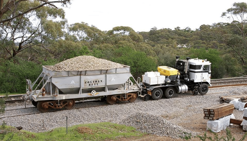 Les fans de la marque et les nostalgiques du K100 apprécieront sans doute moyennement le sort réservé à ce Kenworth par la compagnie australienne Coleman Rail : elle s’en sert pour déplacer des wagons et former des trains près du port de Melbourne.