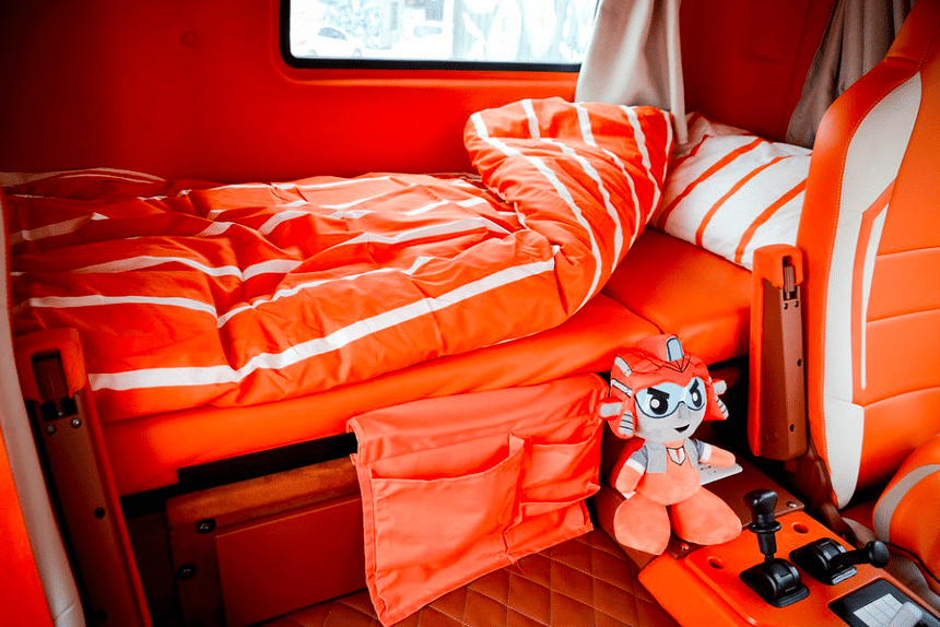 Aussi, la découverte de ce tracteur chinois, traité façon tuning, est-elle, sinon une première, du moins une rareté. Il s’agit d’un C&C, joliment décoré sur le thème du dragon (ou apparenté), cher à la culture chinoise. Cela étant, le style général n’est pas très « local » et reste d’inspiration franchement européenne, tout comme le design de la cabine, soigné et plutôt réussi, mais sans grande originalité.