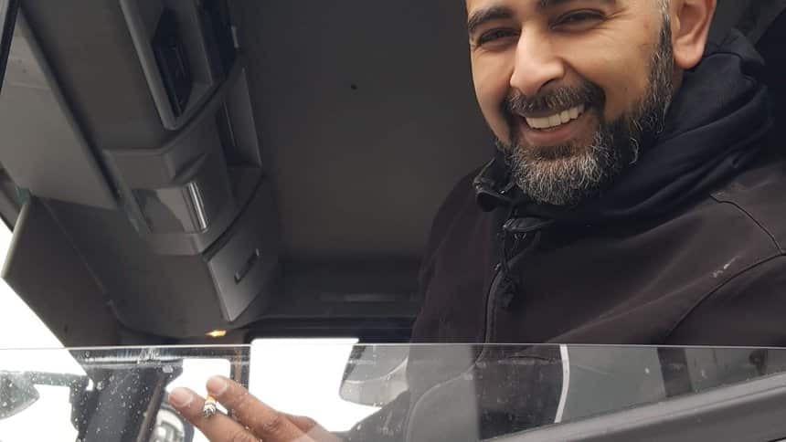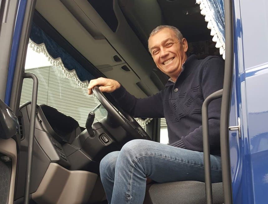 Un peu plus loin, Dominique 56 ans, employé chez Saftair Ventilation, est routier depuis l’âge de 20 ans. Il a commencé à travailler à 16 ans. En pause dans sa cabine, il explique qu’en principe, il devrait « pouvoir partir à 60 ans, avec une carrière longue grâce aux six trimestres cotisés avant 18 ans« .