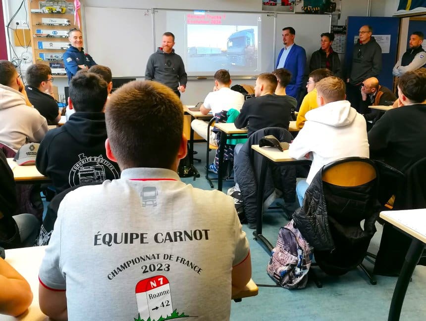 Esprit compétition. Le projet a pris corps de manière étonnante. « Suite au championnat de France des élèves conducteurs routiers que le lycée Carnot a organisé en 2023. Franck Nallet, responsable marketing opérationnel du constructeur, a proposé à l’équipe pédagogique du lycée d’organiser une journée interactive entre le constructeur et les élèves afin d’échanger sur l’évolution du Renault T notamment », explique Arnaud Décombe, enseignant de conduite routière et organisateur de la journée.