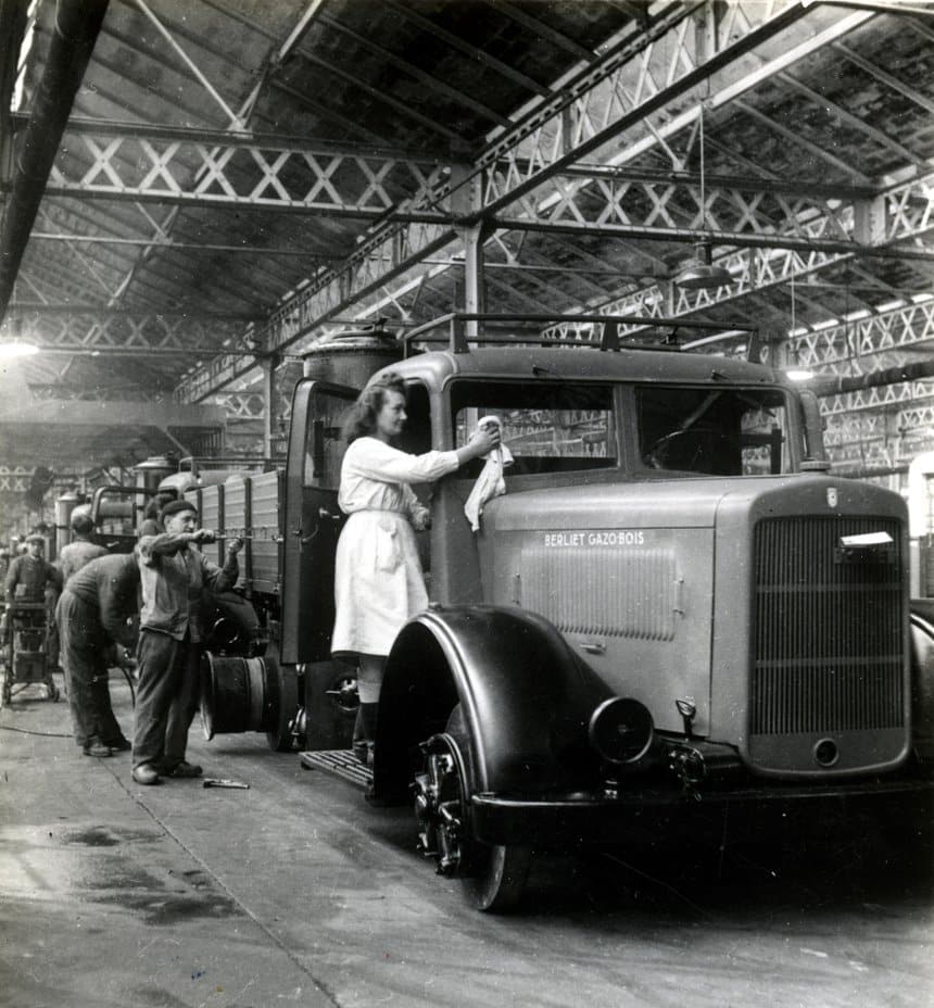 Puis, ci-dessous, la ligne de fabrication des gazogènes en 1943, la forge de Vénissieux en 1960, une ligne de montage des cabines Relaxe (destinées à des GAK) à Vénissieux, en 1962, l’aire de stockage de Saint-Priest et l’actuelle usine d’assemblage des moteurs de Vénissieux.