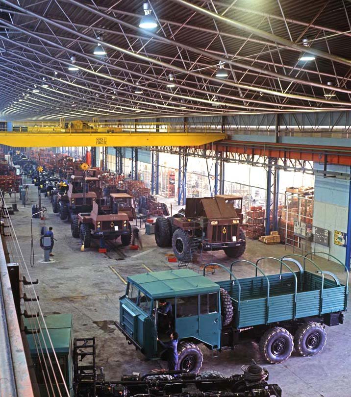 Et pour rester sur le même thème, mais en quittant Lyon, voici deux vues emblématiques de l’autre grande usine Berliet, celle de Bourg-en-Bresse, dans l’Ain, inaugurée en 1964. On y voit une ligne de montage de dumpers et au premier plan un camion militaire 6×6, dérivé du GBU de l’armée française et destiné à la Chine.