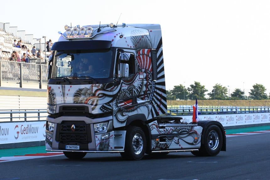 Renault Trucks expose plusieurs camions au GP de Magny-Cours dans la Nièvre, les 7 et 8 juillet. Parmi eux, le T Tatoo, un camion décoré.
