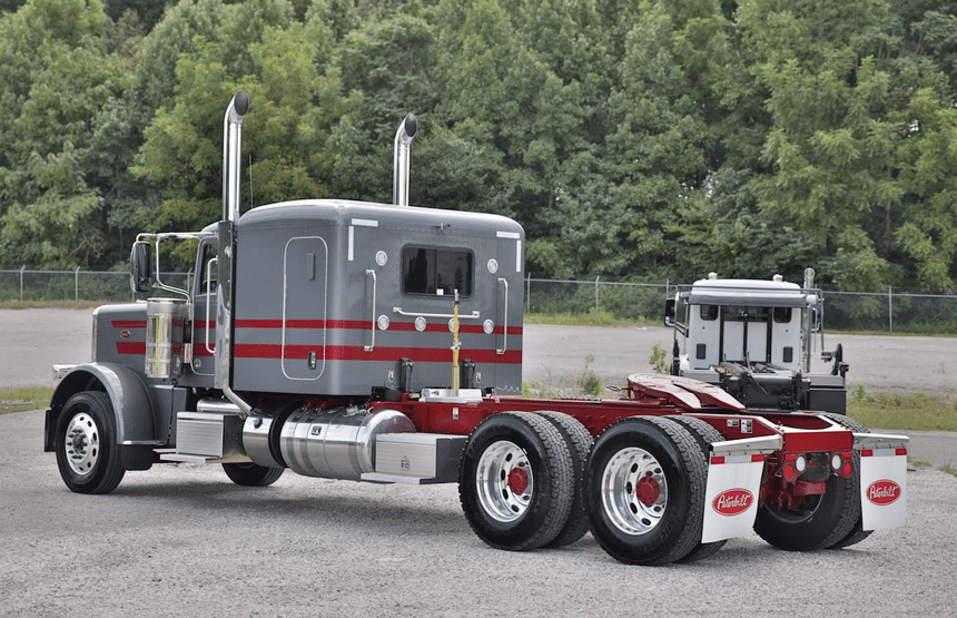 En jouant sur la déco, on peut même se croire revenu quelques décennies en arrière. Comme le prouve cet élégant 389 doté d’un petit sleeper à l’ancienne, à toit plat, de 1,83 m de long. Mais sous le capot, se dissimule une mécanique performante avec un Cummins X15 de 605 ch. Bon, c’est vrai, les rétros ont un peu changé mais les échappements restent chromés et verticaux. L’empattement est généreux, avec un peu plus de 7 m, et, petite concession au progrès, la suspension arrière est pneumatique. Mais avec une monte en 24.5 !