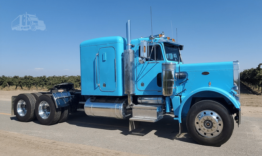 Histoire de vous rafraichir la mémoire, voici, ci-dessous, un « vrai » classique : un 359 fabriqué en 1986, donc parmi les derniers de la série. Joliment restauré en 2021, il est prêt à rouler. Son empattement est un peu plus court, 6,6 m, et sa mécanique typique des Peterbilt de l’époque avec un diesel Caterpillar 3406B associé à une boîte Fuller à 13 rapports.
