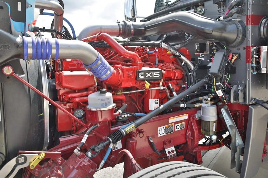 Reste qu’on ne travaille pas en 2023 comme on travaillait en 1983 ou en 1973. Aussi le 389 ne renonce-t-il pas aux technologies de pointe : écran tactile, Bluetooth, GPS, tableau de bord configurable, diesel Paccar MX-13 ou Cummins de dernière génération, freins à disques, etc.