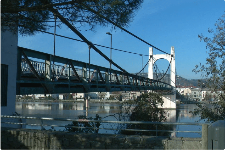Les poids lourds de plus de 19 tonnes de PTAC ne peuvent plus circuler sur le pont suspendu situé sur la D 28, qui relie les départements du Rhône et de l’Isère, entre Condrieu et Les Roches-de-Condrieu.