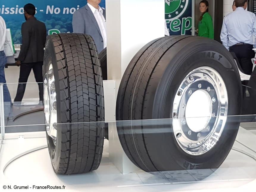 Goodyear présente, au salon IAA 2018 à Hanovre, un pneumatique poids lourd long courrier, le Fuelmax Performance. Le manufacturier propose également une solution de gestion connectée des pneus via une application.