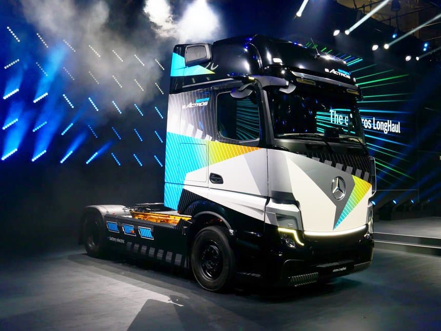 Dans la course à l’armement électrique qui anime les constructeurs de camions actuellement, Daimler trucks a présenté à l’IAA 2022 l’eActros LongHaul (longue distance en français), un tracteur électrique à batteries qui peut couvrir jusqu’à 500 km de distance sans recharge.