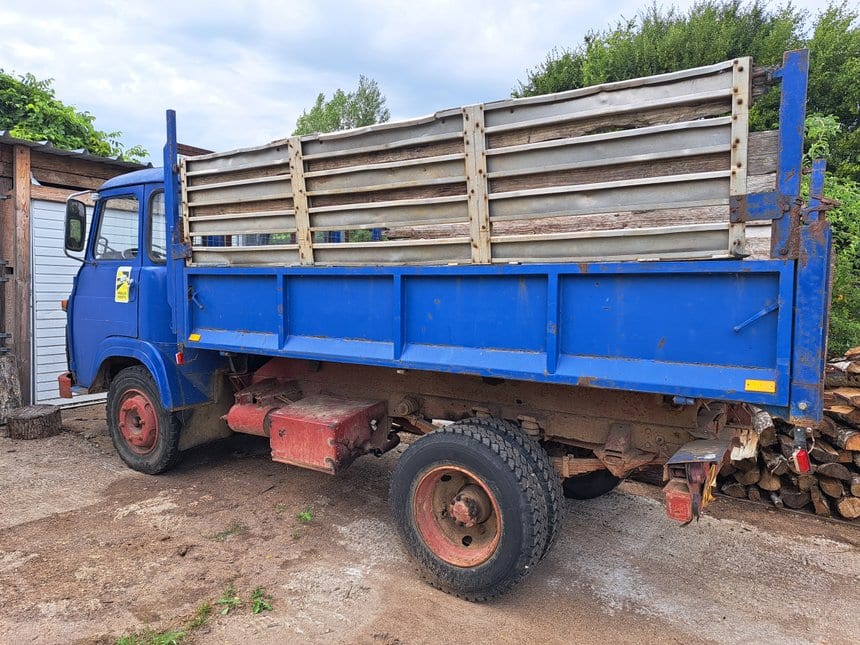 Le Saviem SG5 est garé au fond de la cour. Le moteur est encore chaud. « Le camion m’a été bien utile ce week-end », lance en guise d’accueil Marco, son propriétaire. Pour organiser la traditionnelle fête du Foulon, une fête de village avec vide-grenier, spectacles, animations diverses et feu d’artifice, le président du comité des fêtes a fait appel à son fidèle destrier. « J’ai transporté du matériel, chaises, tables… » Dans la benne, la place ne manque pas.