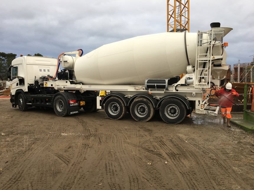 Cet ensemble novateur est composé d’un tracteur 4×2 Scania G 410 alimenté au gaz naturel compressé (GNC) et d’une semi-remorque tridem Liebherr ETM1204 portant un malaxeur de 12 m3.