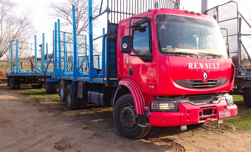 Enfin, dans un tout autre registre, voici un camion beaucoup plus récent et d’un modèle particulièrement courant en France, mais pas dans cette application, ni à ce tonnage : ce Renault Midlum 300 DXi 6×2 travaillant en grumier est homologué à 45 t de PTR. Ce qui n’a pas l’air de l’indisposer.