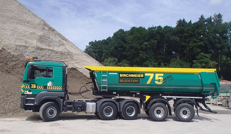 Autant dire que le contraste est violent avec cette courte semi-remorque benne livrée par Trösch à la société Birchmeier. En fait, il s’agit d’une semi allemande Reisch dont Trösch assure la distribution en Suisse depuis une quinzaine d’années. Un ensemble ultra-compact, parfaitement adapté aux routes de montagne les plus difficiles ou aux chantiers les plus exigües. Avec un tracteur 6×4 ou 6×6, comme ici un MAN TGS, la capacité d’emport reste importante, grâce à deux essieux à voie large et monte en simple de 10 t chacun, dont le dernier dirigé. Plus maniable et pratiquement aussi manœuvrable qu’un porteur 10×4 !