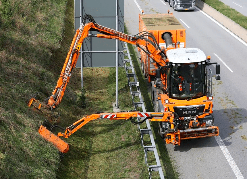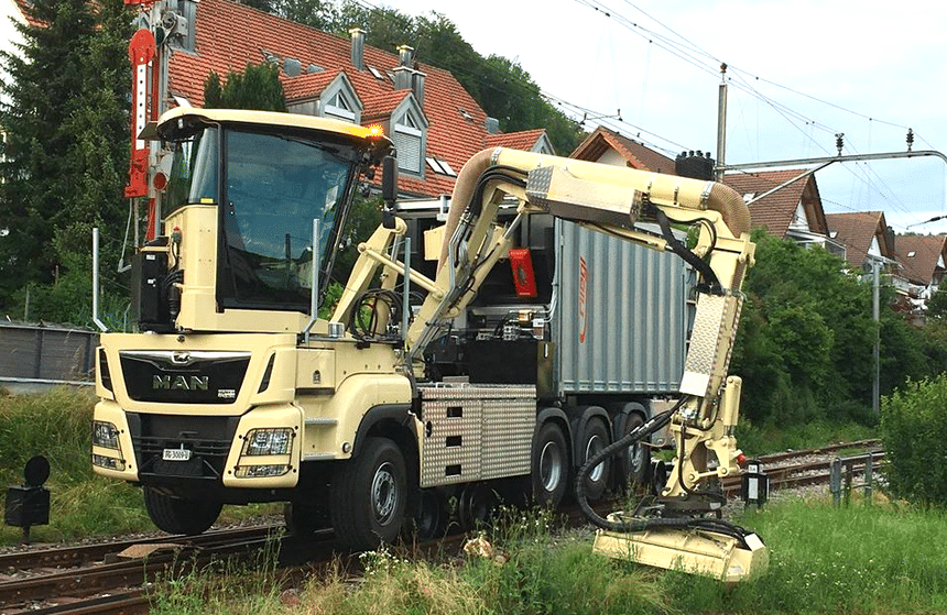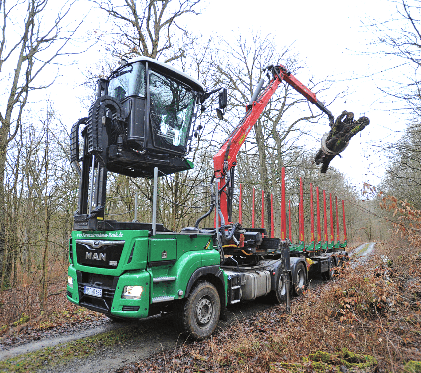 Pour quoi faire ? Évidemment pas pour profiter du paysage. Ce poste de conduite, développé en Allemagne par Toni Maurer, est destiné à des camions employés comme porte-outils, notamment pour du fauchage/débroussaillage ou des travaux forestiers.