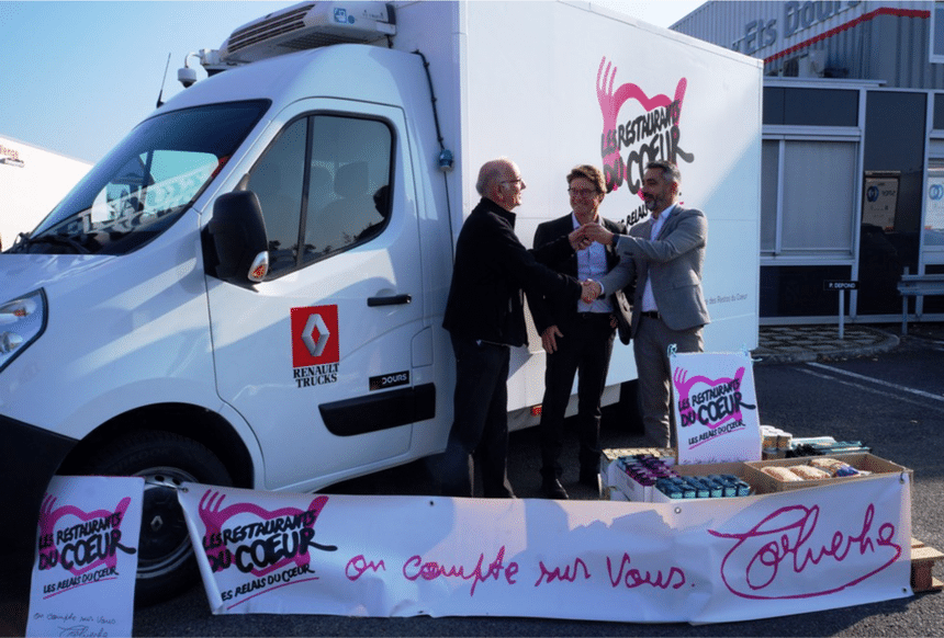 Le constructeur français s’engage également contre la faim en France. Très impliqué dans la démarche des Restos du Cœur, avec un premier don de trois utilitaires Master, Renault Trucks a remis début janvier les clés de trois autres Renault Master d’occasion à l’association, par l’intermédiaire de ses concessionnaires locaux. Cette année, ce sont les antennes départementales de Blainville-sur-Orne, dans le Calvados (14), Tours, dans l’Indre-et-Loire (37) et Annecy (Meythet plus précisément) en Haute-Savoie (74) qui les ont reçus. Chaque véhicule est en outre accompagné d’un contrat d’entretien d’un an, offert par le distributeur et réparateur local Renault Trucks.