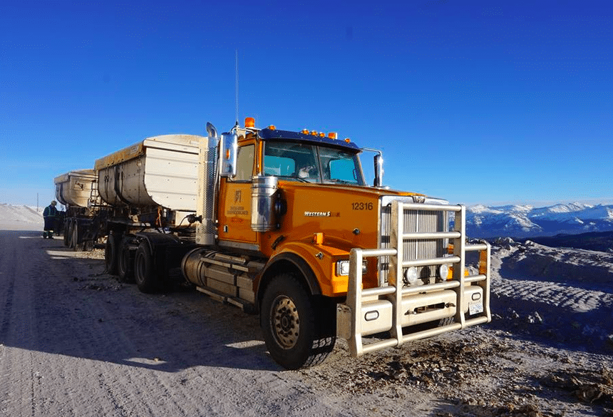 Enfin, pour finir, deux tracteurs Western Star du parc actuel avec d’abord un 4900 tridrive (10×6) pour les mauvaises pistes et les fortes charges et un grand routier 5700XE de dernière génération pour les liaisons au long cours.