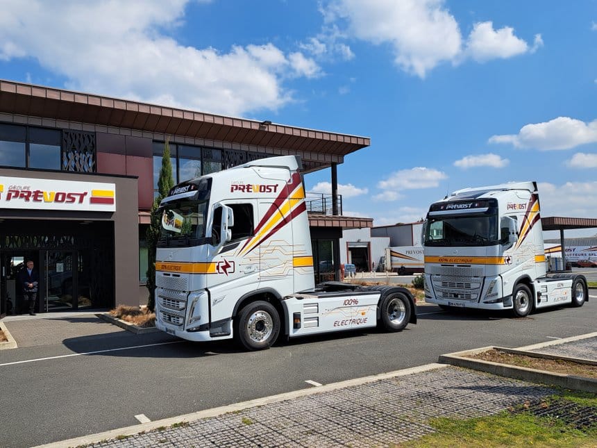 Après le biocarburant B100 et le biogaz, les transports Prévost poursuivent la décarbonisation de leur flotte en misant sur l’électrique. En avril 2023, L’entreprise familiale avait acheté ses trois premiers tracteurs électriques à Volvo Trucks France. France Routes avait assisté à la cérémonie de remise de clés (cliquez sur ce lien pour lire l’article).