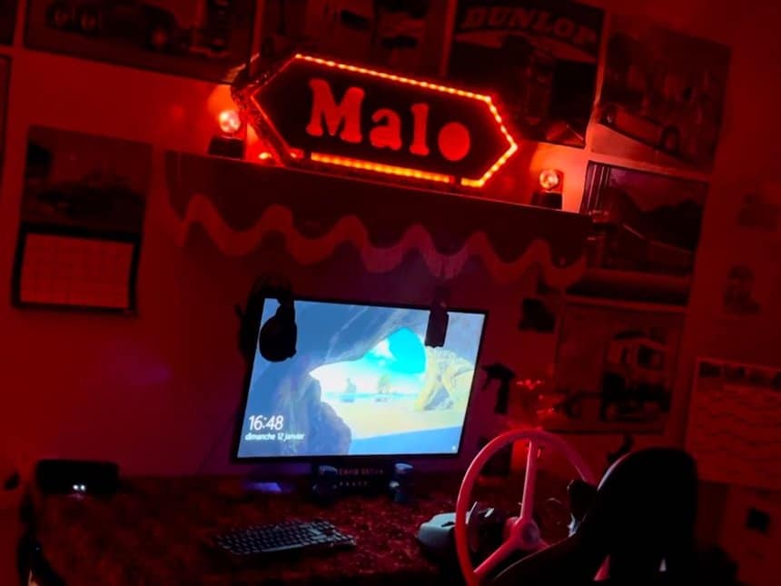En attendant les prochaines expéditions. En rentrant du collège, Malo retrouve chaque soir son univers. Sur le bureau de sa chambre, il s’est fait un « Setup », pour jouer à Euro truck simulator. Le but de ce jeu vidéo est de gérer sa propre entreprise de transport routier. « On peut personnaliser nos camions avec pas mal d’équipements ». La tête de son lit est même customisée avec du cuir, comme à l’intérieur des plus belles cabines !
