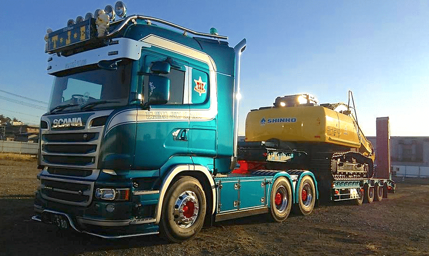 Avouez qu’il ne déparerait pas sous ces identités. C’est pourtant bien loin des terres nordiques qu’il travaille : ce Scania roule au Japon !