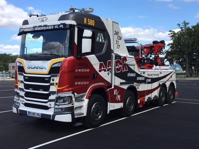 Spécialiste du dépannage et du remorquage de véhicules, du deux roues au 120 tonnes, la société AADR/3A* basée à Vertou et à Bouguenais dans la périphérie nantaise complète sa flotte avec ce véhicule d’exception acquis auprès de la DIAN, le distributeur local Scania. «Entre la commande et la livraison, il s’est écoulé une année. Le temps de transformer le châssis et d’assurer le cahier des charges et le montage de son équipement », déclare Gaël Arnaud, conducteur du véhicule et associé de l’entreprise.