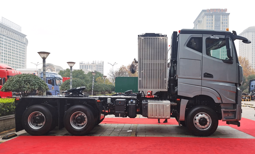 Sa mécanique est-elle chinoise ? Si la conception d’ensemble est chinoise, la mécanique, elle, est occidentale : toute la chaîne cinématique est achetée à Mercedes, s’agissant de celle des Actros SLT.
