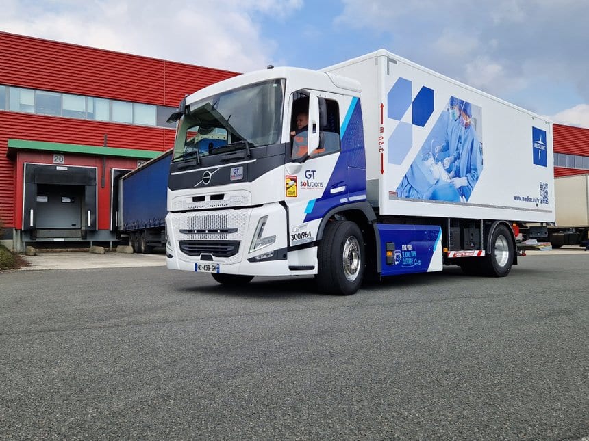 Le 14 mars, GT Solutions a symboliquement remis les clés d’un des camions électriques qu’il a acquis l’année dernière, grâce à l’appel à projets de l’Ademe, dans l’entrepôt français de Medline, au Coudray-Montceaux dans le département de l’Essonne. Les deux entreprises ont convié la presse pour l’occasion.